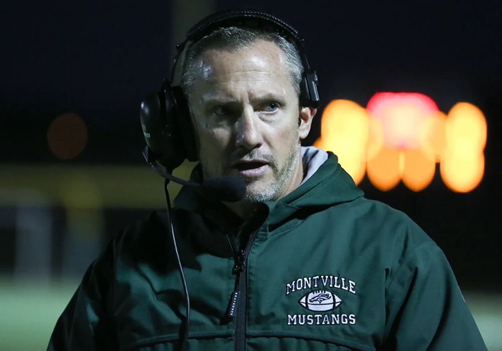 Rick DeBonta coaches the Montville Mustangs football team.