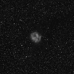 Each object was imaged with a blue filter, a red filter, and an infrared filter. All of the images below are one degree on a side. Each image is unique. It is a process of elimination to discover the type of object. You'll also notice that in some filters, the object is brighter than in others. That appearance will be a clue to the object's nature. For instance, notice that M1 is bright in all three filters, but the Pelican is distinctly not. When you compare M38's three images, one is brighter, showing the stars more clearly. Noticing these differences will be important for part 2 of this laboratory exercise.