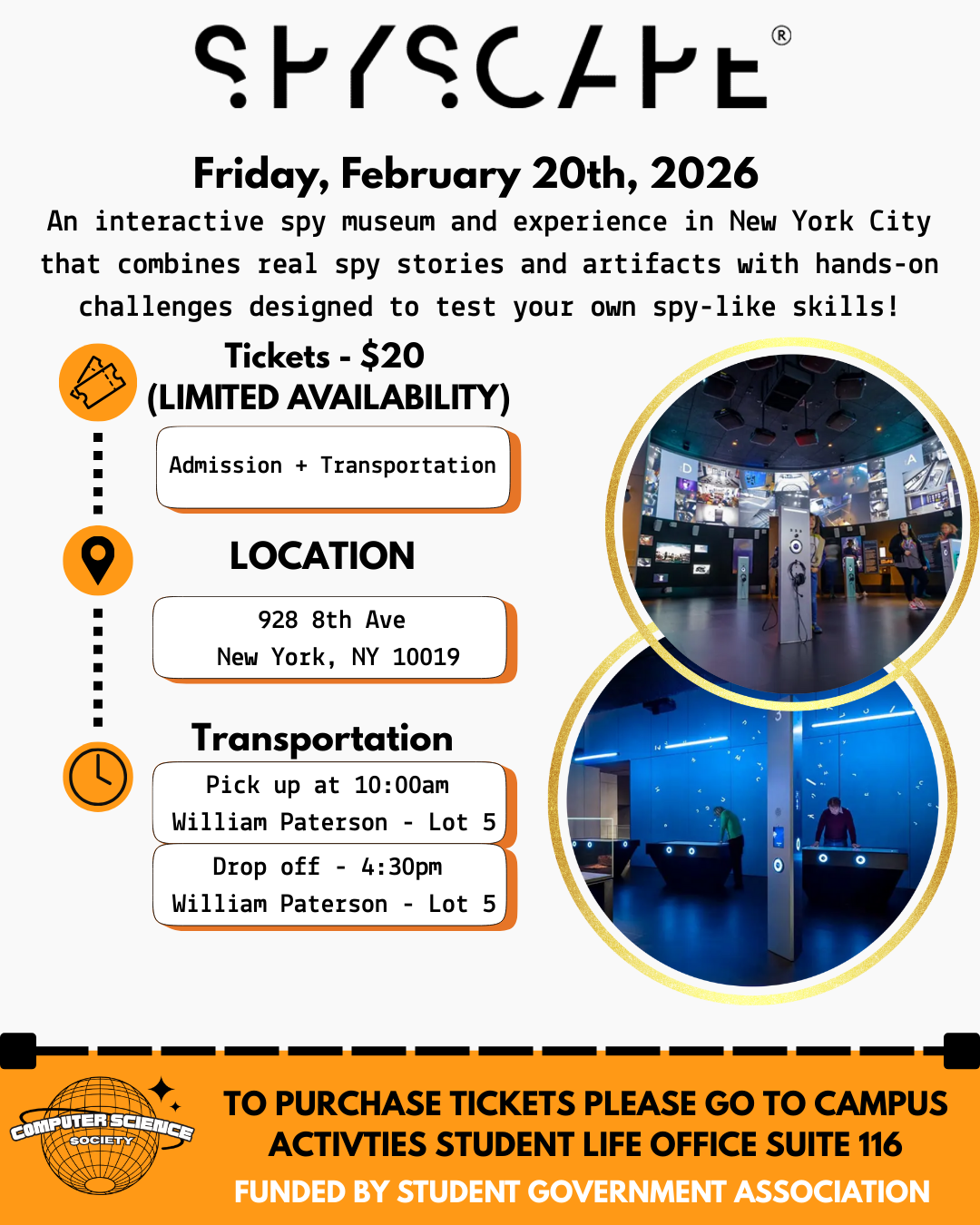 Spyscape Field Trip - Please contact Dr. Nan Wang for more information (2/20/2026): Event Flyer